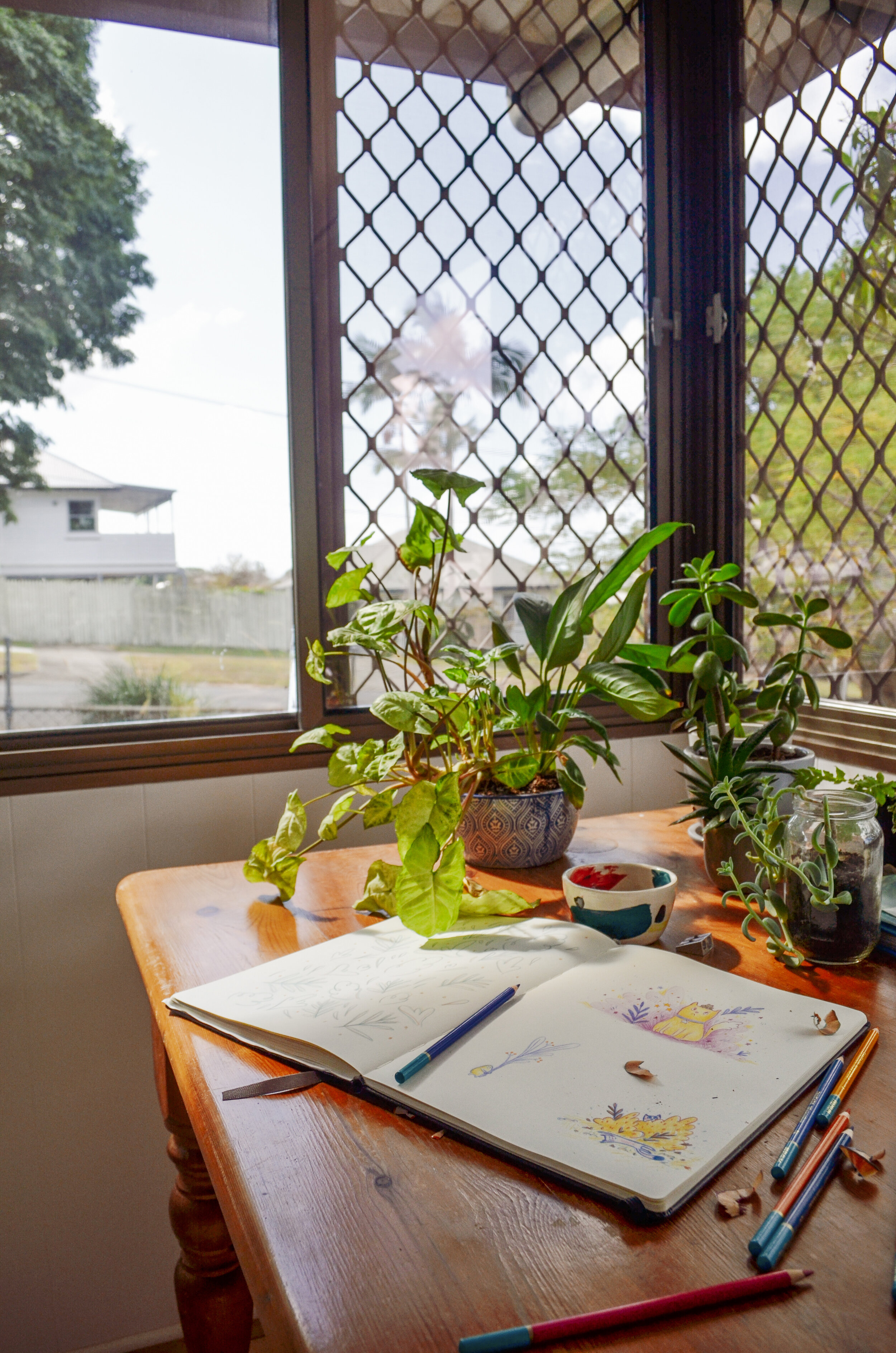 I have a sunny little desk in my house where I can see the clouds go by out the window, look at my little plants and conjure up ideas - and that’s how I like to draw. You might like curling up on the couch with a blanket with music blaring. You might like peace and quiet, or you might enjoy people watching to spark ideas. It really doesn’t matter what your space looks like, just make sure that it works for you.